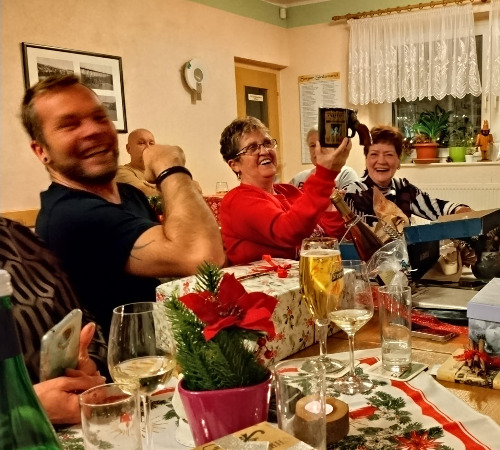 Im Gegensatz zum Vorjahr waren fast alle darauf vorbereitet. So hatten alle ihr Gedicht oder Lied parat und wollten es so schnell wie möglich vortragen. Jeder wollte der Erste sein und sich die größte Auswahl am Gabentisch sichern. Es hat allen rießigen Spaß bereitet. Wir haben viel gesungen und gelacht.😄