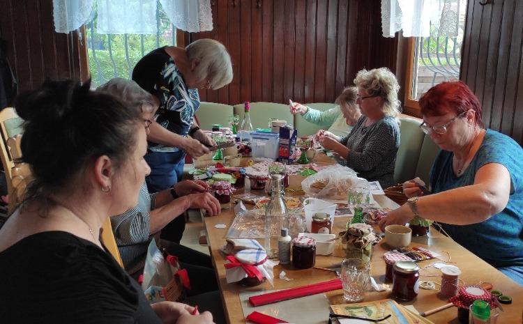 Ehrlich gesagt, nach der Veröffentlichung der Einladung zum Basteln hatte ich schon "Bauchschmerzen", ob das Angebot überhaupt angenommen werden würde. Um so größer war meine Freude, als sich eine fröhliche Runde zum Werkeln im Vereinsheim zusammengefunden hatte.