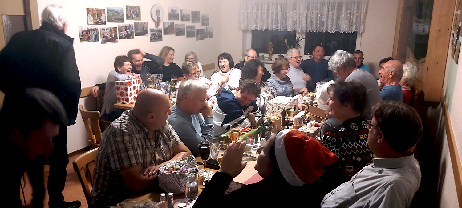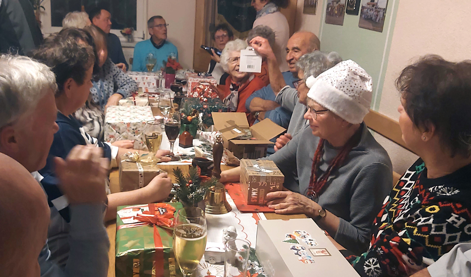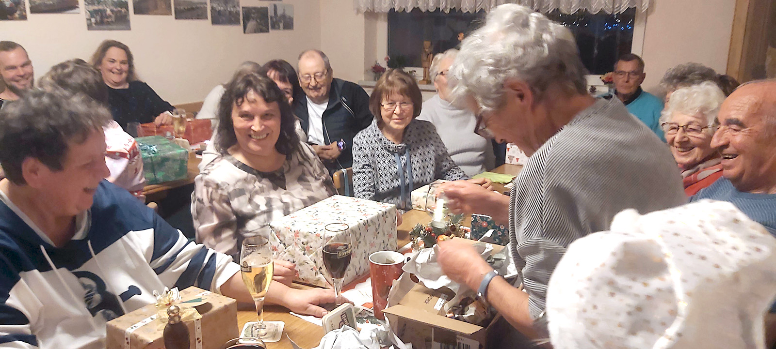 mit unserer Weihnachtsfeier beenden wir das Kalenderjahr 2024 im Verein. Wir sind uns sicher einig, dass das ein gelungener Abschluss war. Mit 30 Teilnehmern war der Raum im Siedlerheim gut gefüllt, mit Wichtelpäckchen auf dem Stammtisch und Büfett nahmen wir das gesamte Siedlerheim ein.