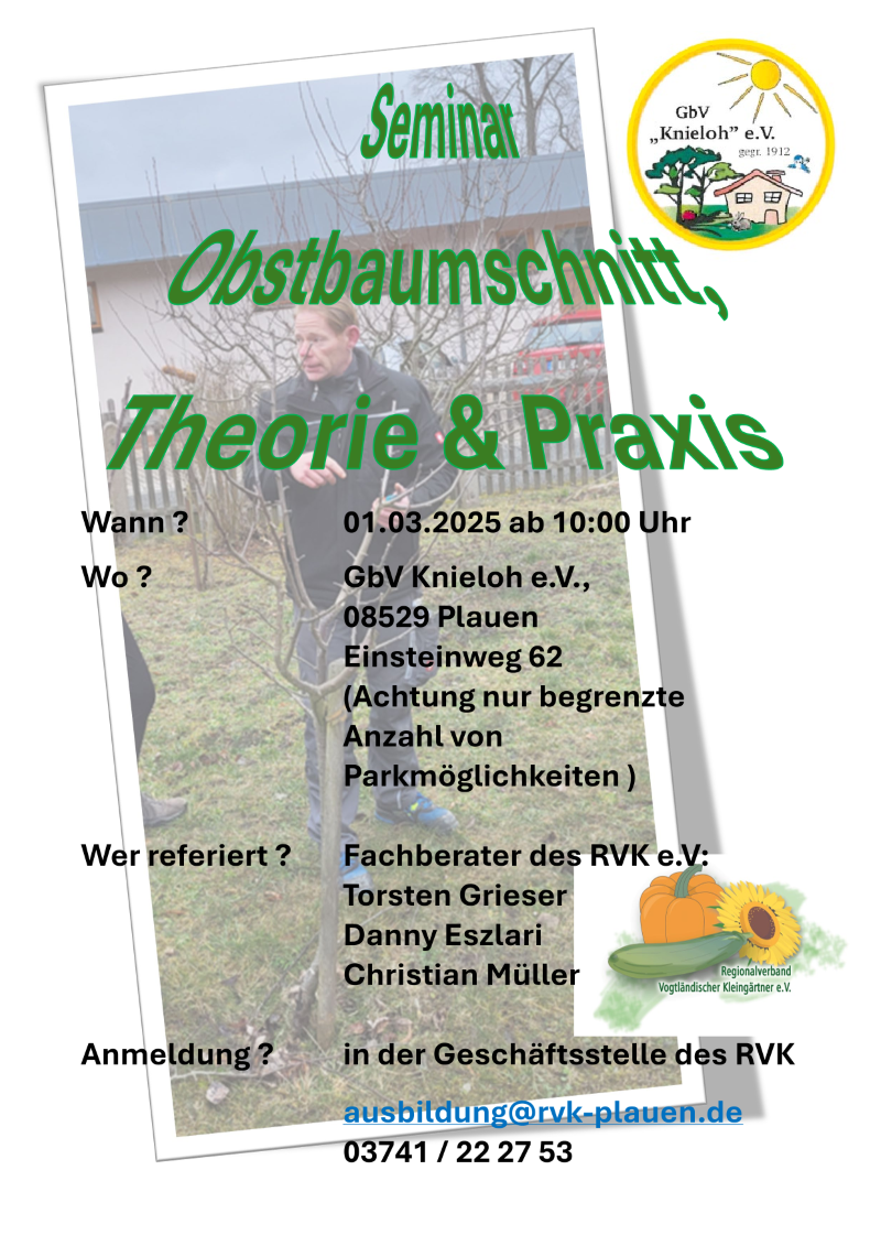 Dabei gehen sie auf die Grundlagen des Pflanz-, Erziehungs- und Verjüngungsschnittes an Kern- & Steinobstgehölzen ein. Sie erklären die grundlegendsten Elemente wie Saftwage, Schnitt auf Astring, … und einige Besonderheiten mehr. Geschnitten wird so ziemlich alles was wir vorfinden mit umfangreicher Erläuterung. Torsten Grieser zeigt Euch ergänzend noch die Veredelung von Obstgehölzen auf.