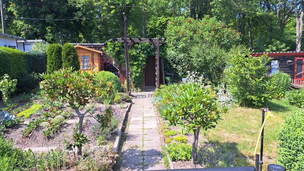 Dieser Garten ist in einem sehr gepflegten Zustand. Die Vorbesitzer haben sich hier mit viel Liebe und Engagement ein kleines Idyll geschaffen. Die Bepflanzung beeindruckt durch ihre Vielfalt und ihre Gepflegtheit. Auch sonst ist die gesamte Parzelle sauber und schön angelegt. Die Gartenlaube ist noch relativ neu (Bj. 2011) und in sehr gutem Zustand.