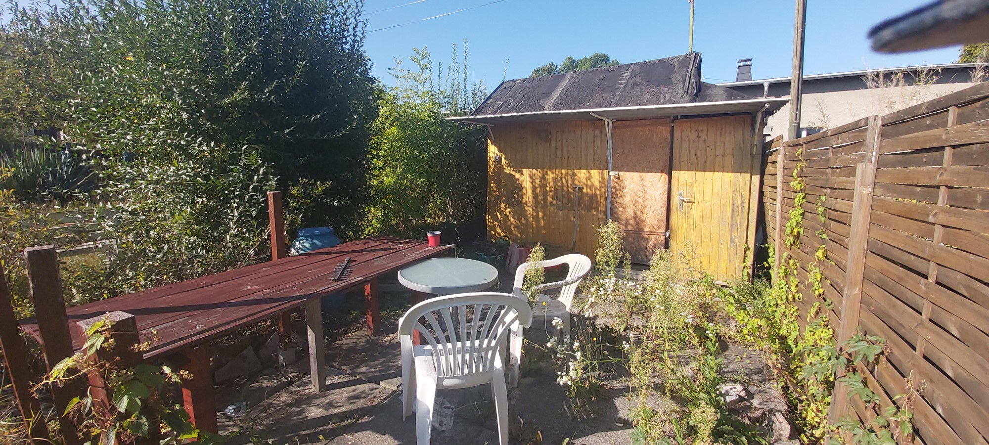 Leider gibt es nur eine sehr kleine Laube. Diese bietet gerade genug Platz für das Unterstellen der Gartenutensilien. Aber aufgrund der großen Rasenfläche kann hier auch problemlos ein neues Gartenhaus gebaut werden.