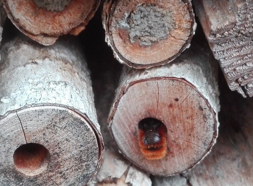 Zudem muss die zukünftige Brutröhre auf einer Seite verschlossen sein und darf an der Einflugöffnung auch keine Fasern oder Späne aufweisen. Die Bohrungen oder Röhren sollten mindestens 8 bis 10 cm tief sein und 2 bis 9 mm Durchmesser haben.