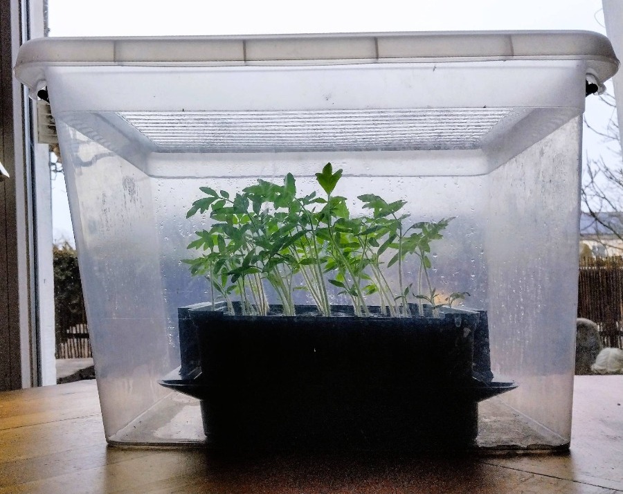 Die Fensterbretter, die für die Anzucht der Jungpflanzen dringend benötigt werden, sind nicht in ausreichender Zahl vorhanden. Abhilfe können transparente Aufbewahrungsboxen schaffen. Die Boxen haben gegenüber den herkömmlichen Anzuchtbehältern den Vorteil, dass sie höher sind und damit den Jungpflanzen bessere Entfaltungsmöglichkeiten bieten.