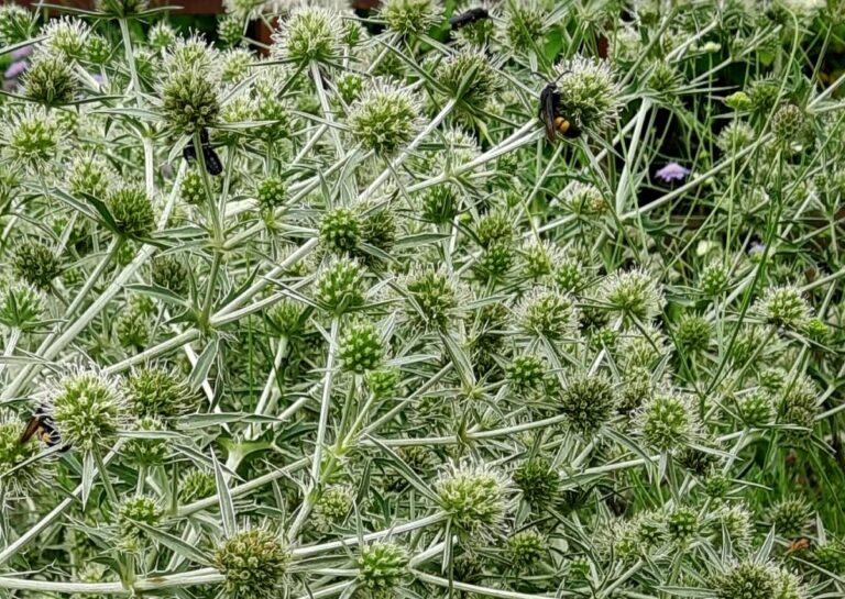 Einheimische Wildpflanzen sind wichtige Nahrungsquellen für Insekten. Das dichte, stachlige Gewirr der Feld-Mannstreu-Blüten bietet zudem Schutz.Sven-Karsten Kaiser,