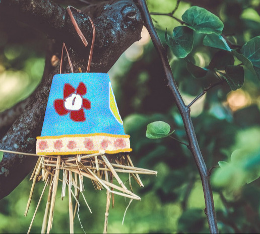 - Tontopf umdrehen und durch das Loch eine Schnur ziehen.